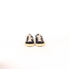 - Black leather & suede and silver eyelets