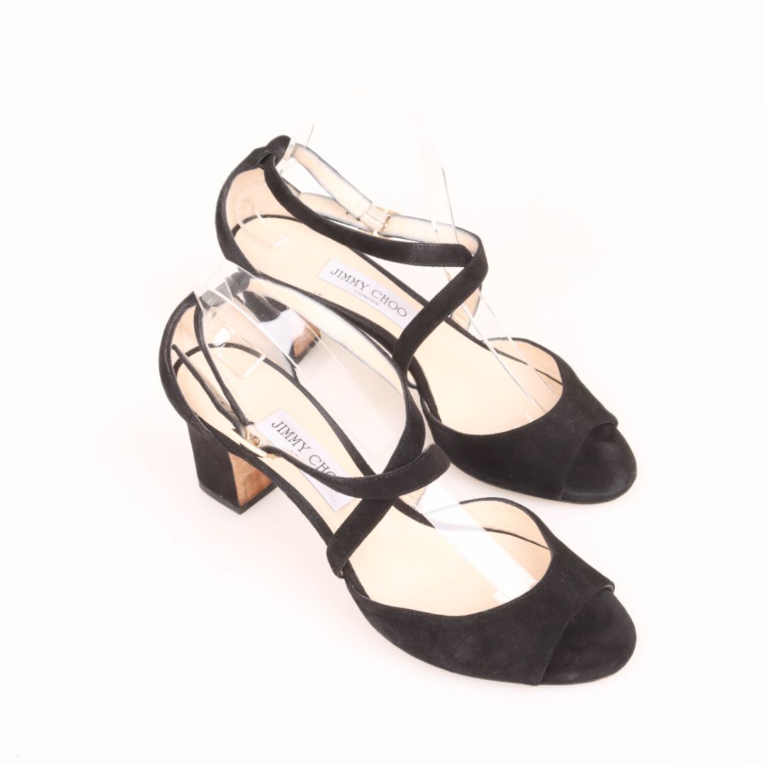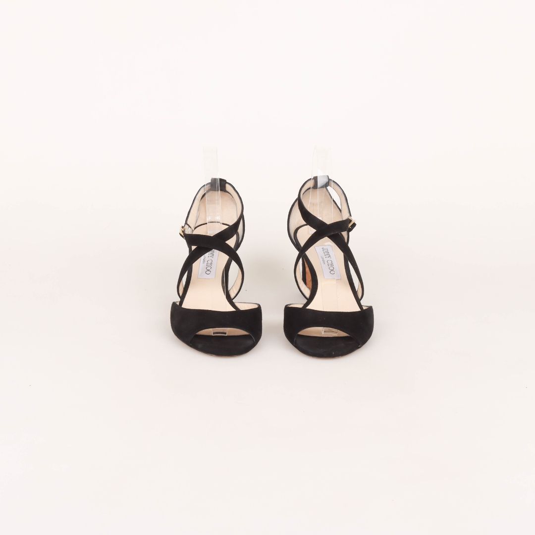 Elegant peep toe heels crafted from luxurious suede with the iconic Miranda silhouette that defines Jimmy Choo's sophisticated aesthetic.