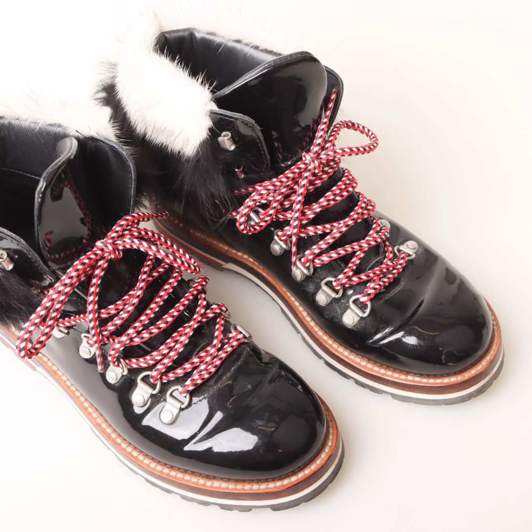 Moncler Patent Fur Trim Snow Boots Size 37.5