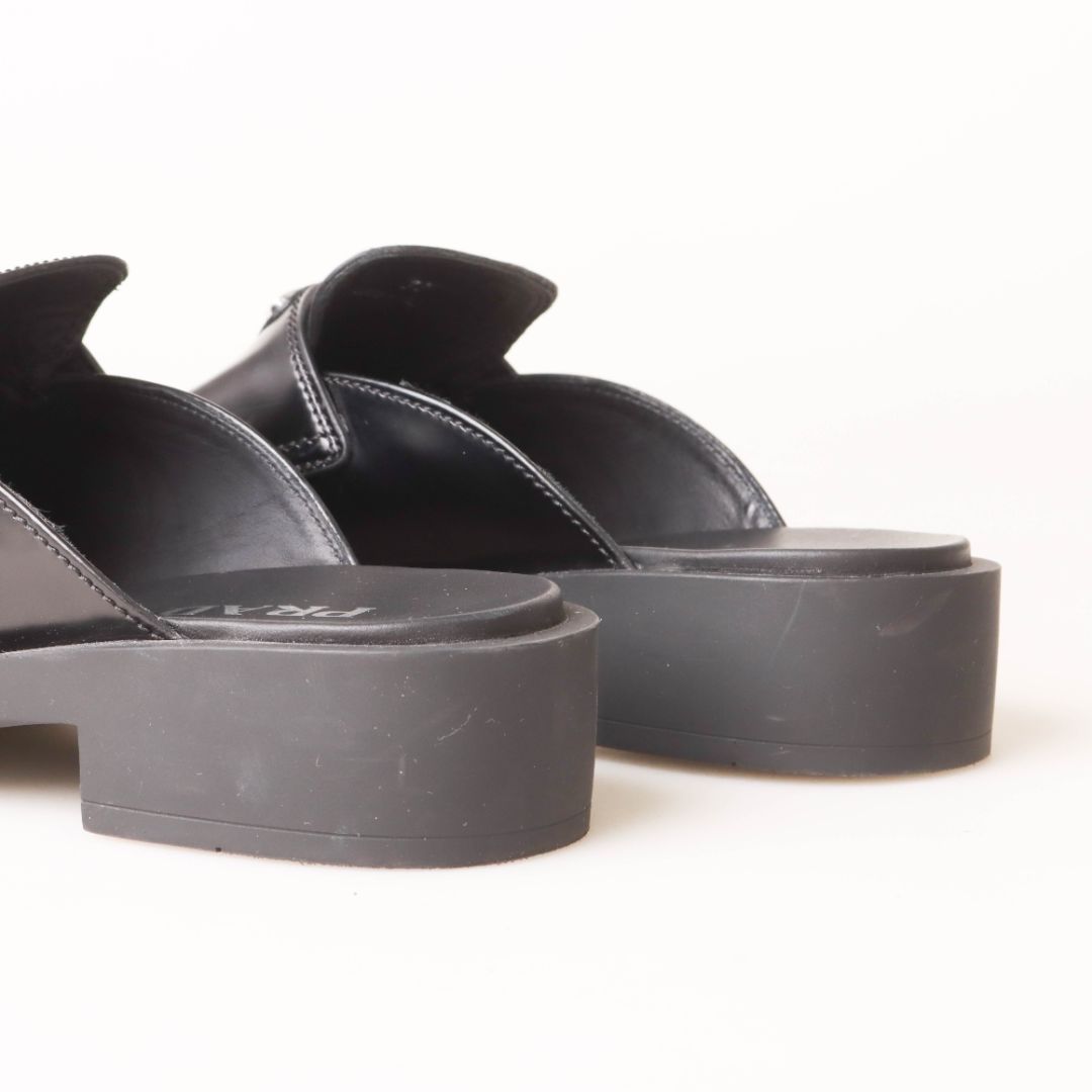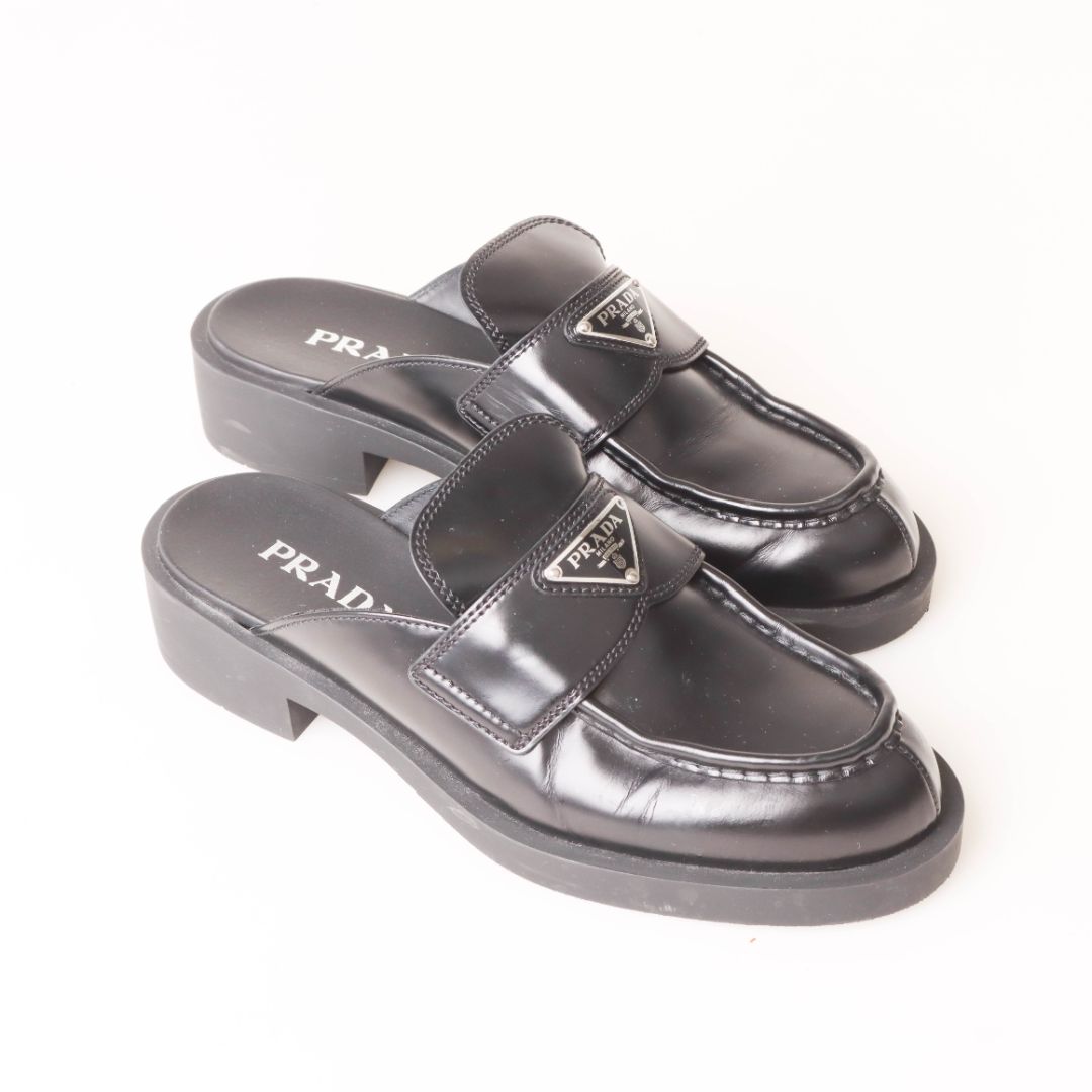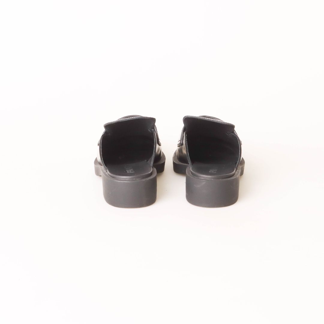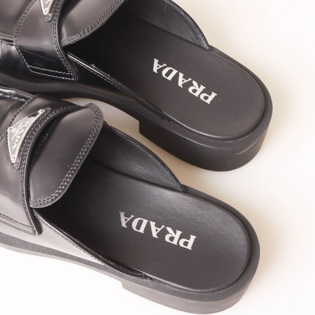 Prada Triangle Logo-Plaque Leather Backless Loafers Size 38