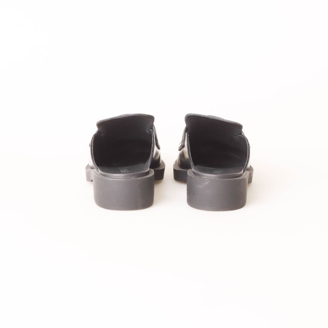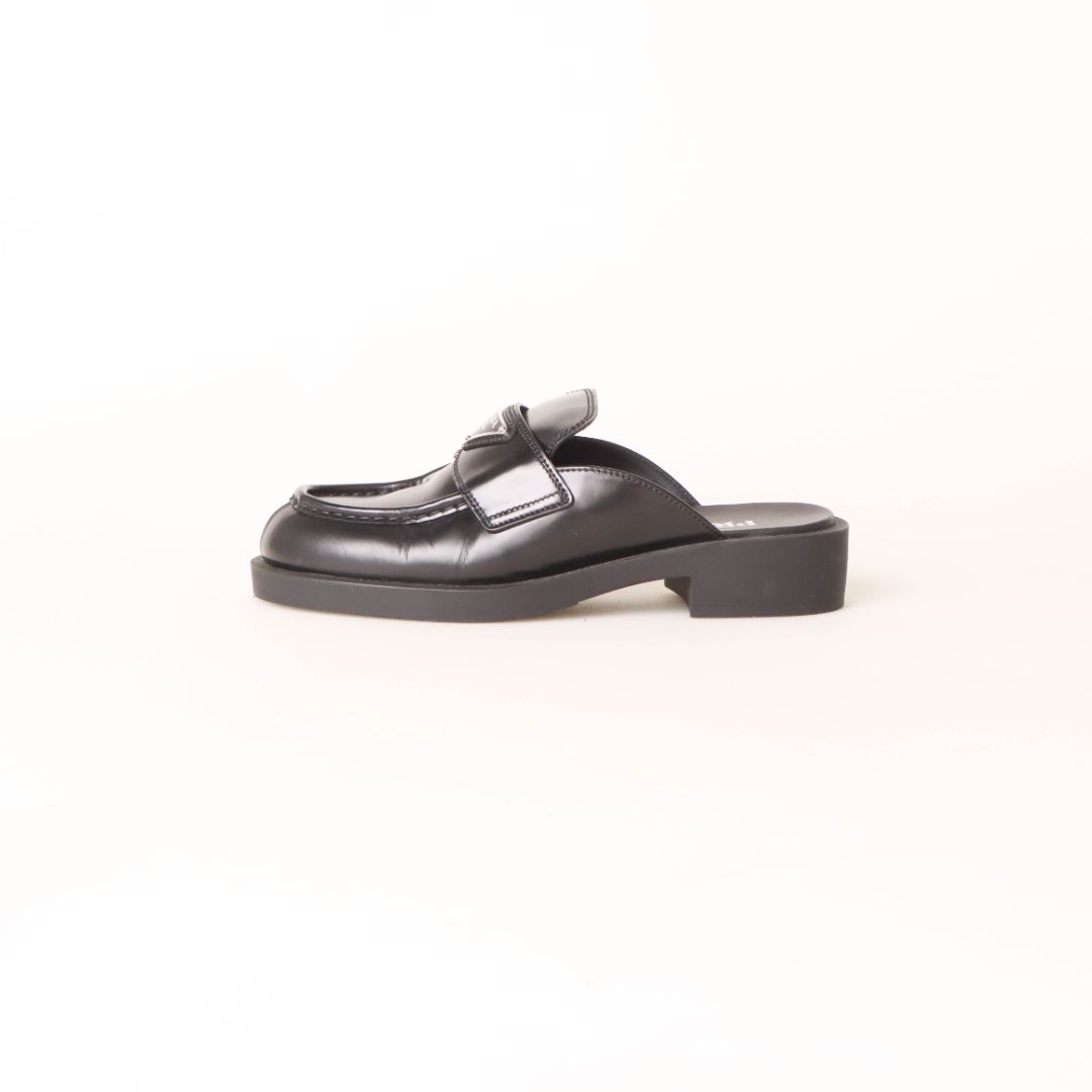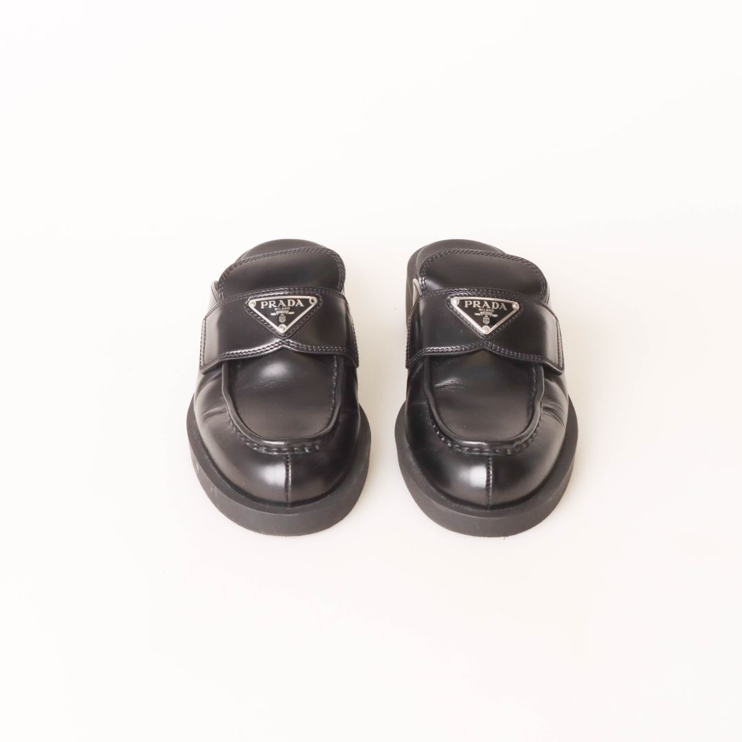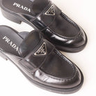 Prada Triangle Logo-Plaque Leather Backless Loafers Size 38
