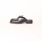 Minimalist backless loafers featuring Prada's signature triangle logo-plaque on premium leather, delivering understated luxury with a contemporary slip-on silhouette.