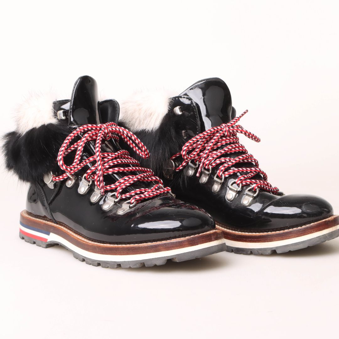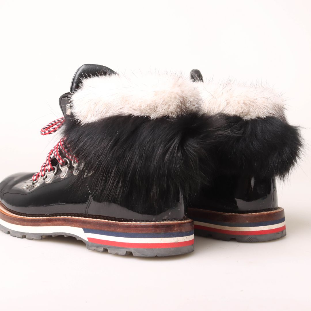 Moncler Patent Fur Trim Snow Boots Size 37.5