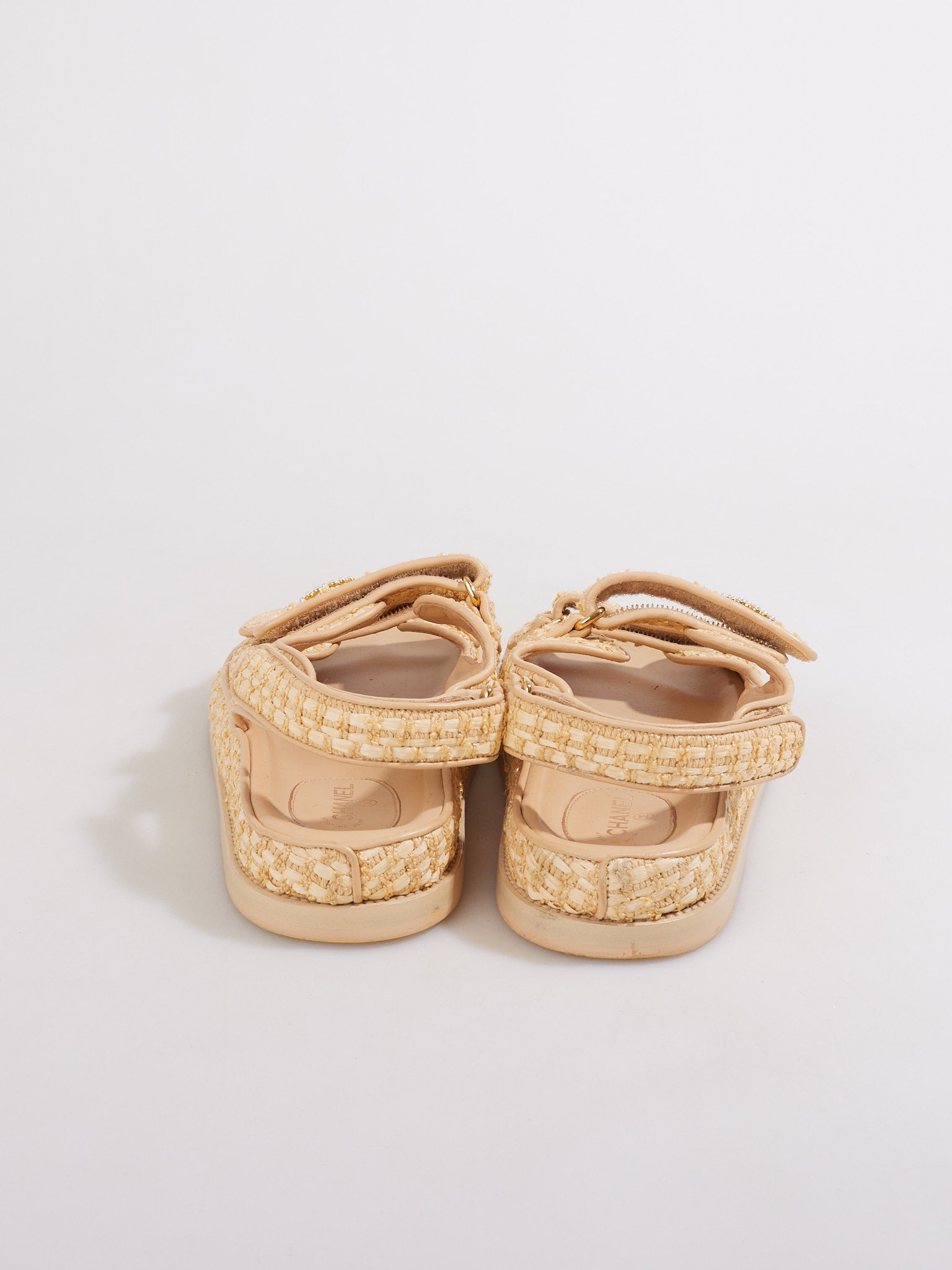 Chanel Raffia Velcro Dad Sandals Size 38