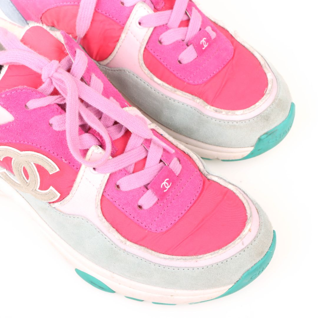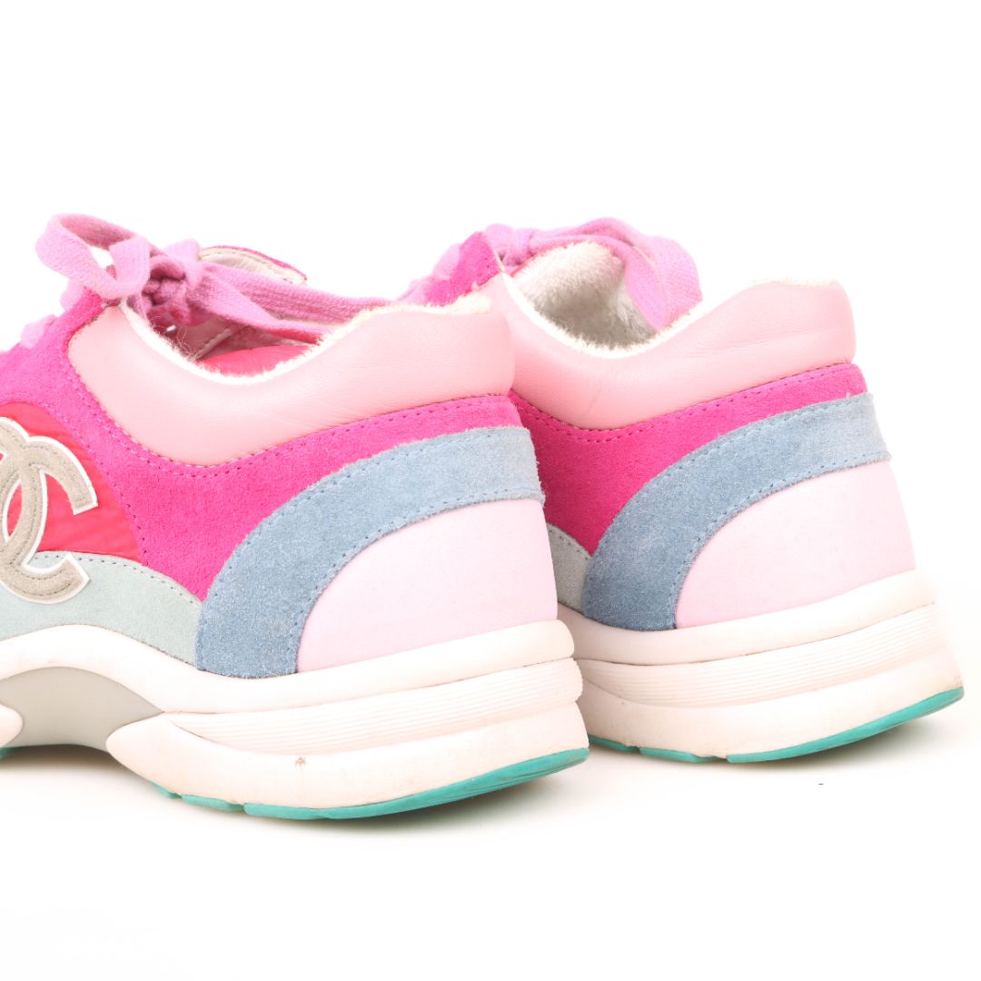 Condition: Fair. Heavy wear to piping. Discolouration to terry towelling lining. Creasing to heel and toe.