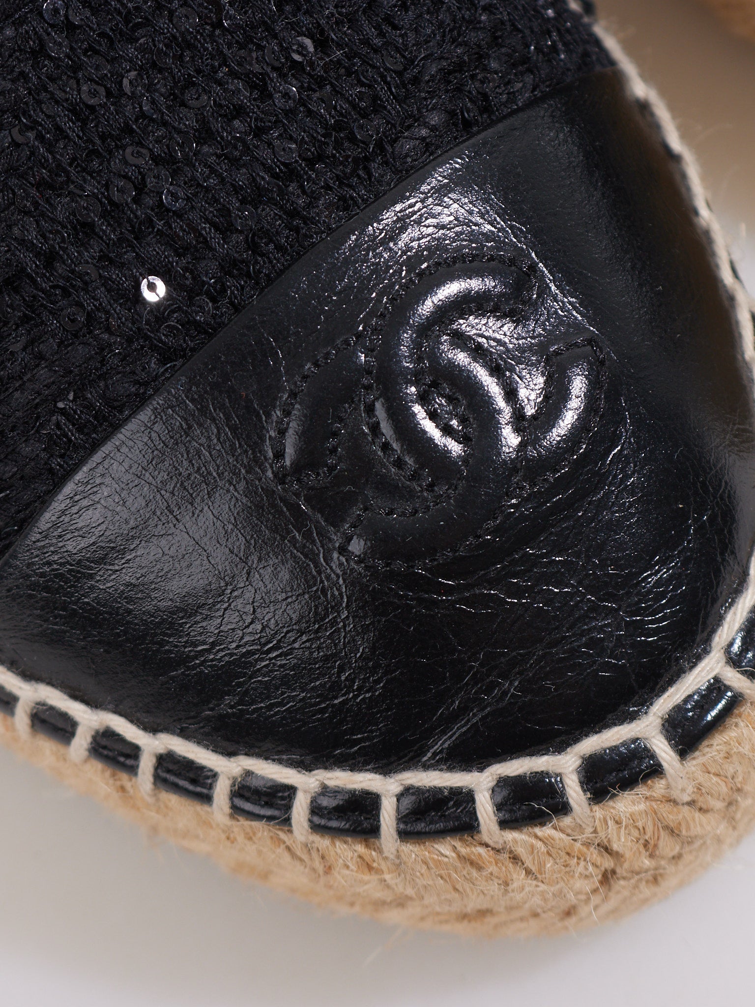 Chanel Cracked Leather CC Logo Espadrilles Size 39