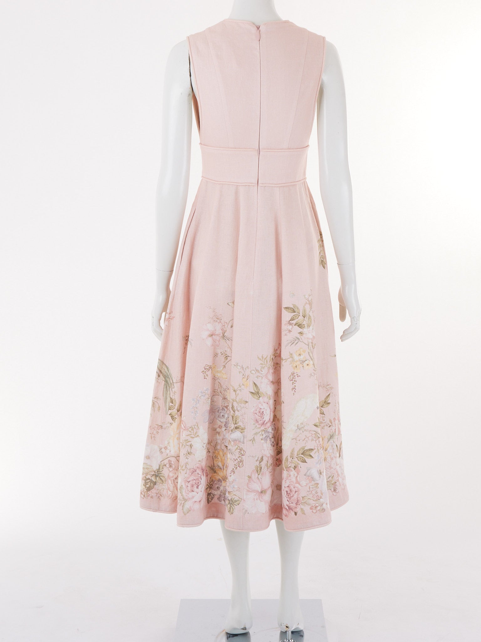 Zimmermann 'Waverly' Plunge Linen Midi Dress Size 0