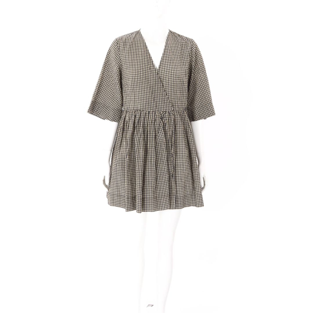 Lee Mathews Checkered Edith Linen Dress with Ties Size 1