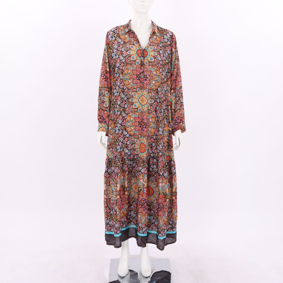 Johnny Was Silk Print Maxi Dress Size Large