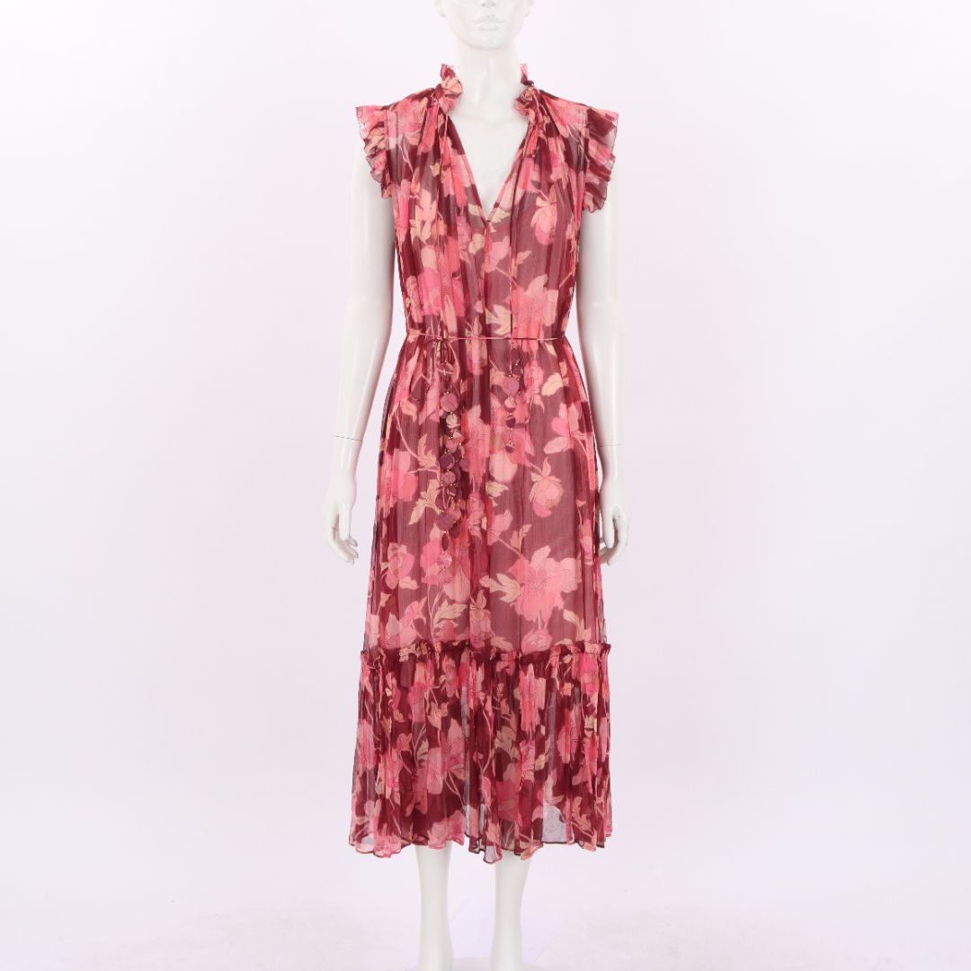 Zimmermann 'Concert' Flutter Silk Midi Dress Size 2