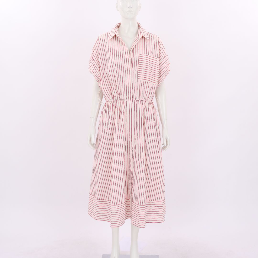 Baum und Pferdgarten Stiped Cotton V Neck Dress 40 | AU 8
