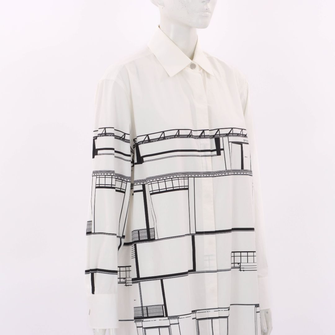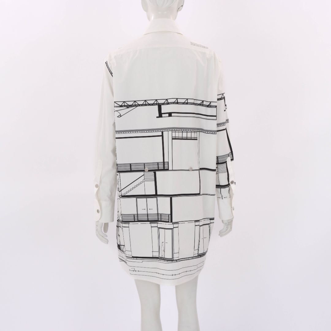 Off White Cotton Printed Shirt Dress Size L