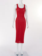 This midi dress features intricate crochet craftsmanship with a refined silhouette that balances delicate openwork detailing with strategic coverage for an effortlessly sophisticated aesthetic.