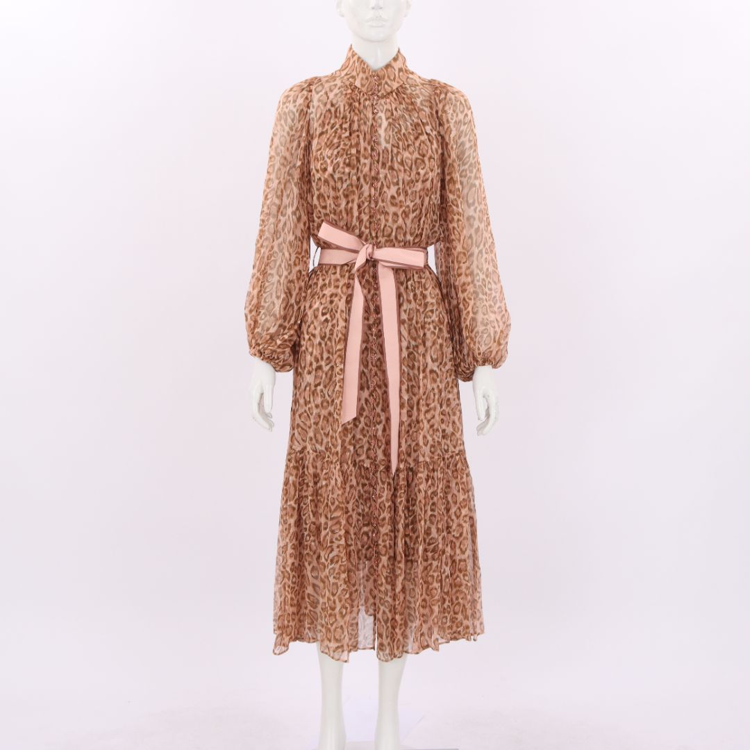 Zimmermann Leopard Print Silk Midi Dress Size 2