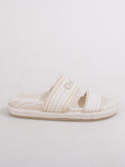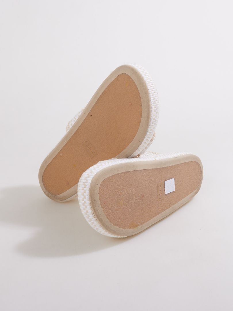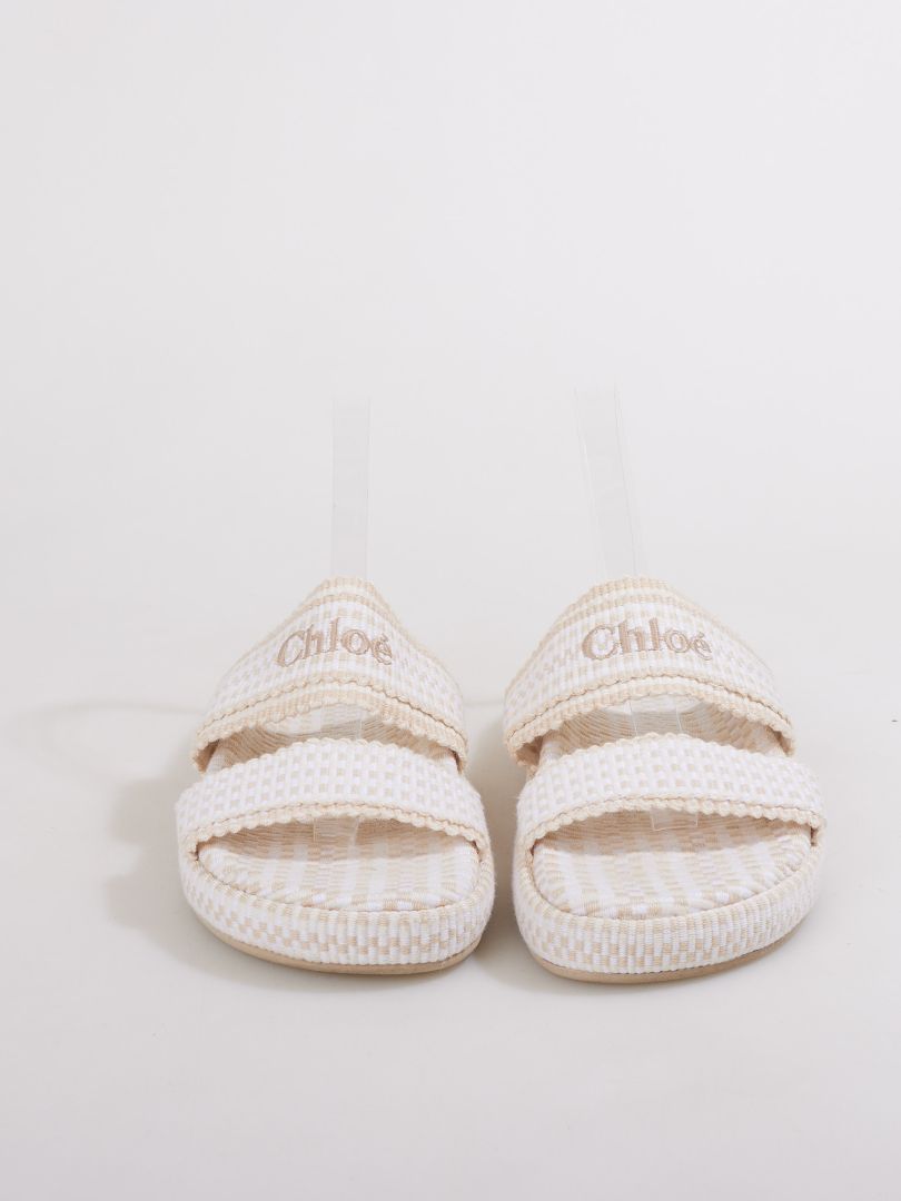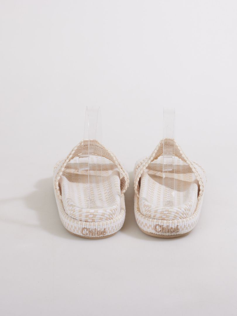 These Chloé Rori fabric slides feature an effortless slip-on silhouette with soft textile uppers and refined embellishments, delivering casual elegance with the house's signature attention to detail.