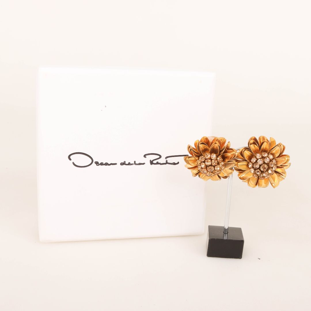 Oscar De La Renta Flower Clip On Earrings