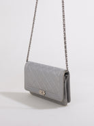 This structured wallet-on-chain features Chanel's distinctive Boy silhouette with its signature quilted leather and bold hardware, offering practical elegance with hands-free versatility.