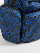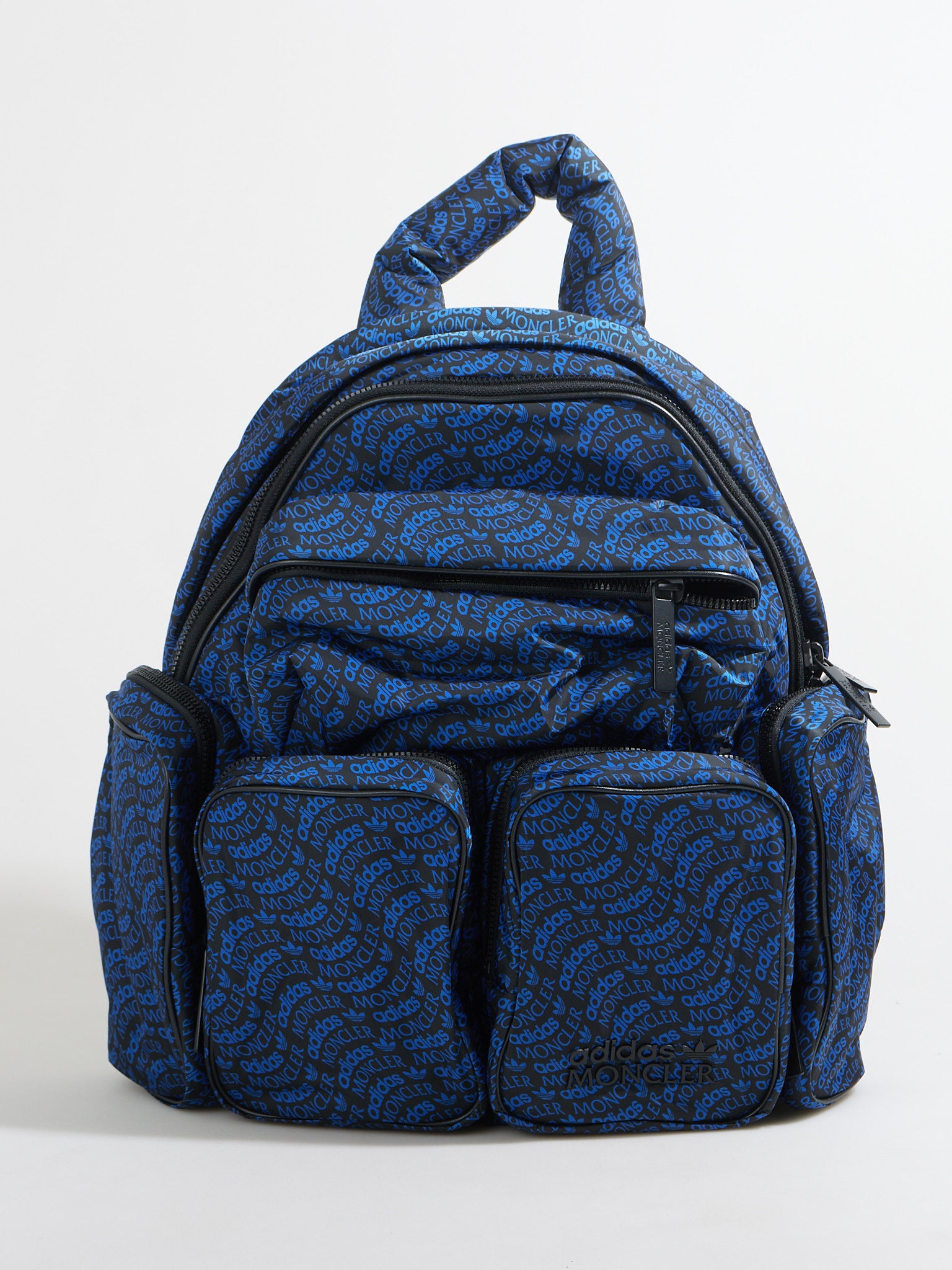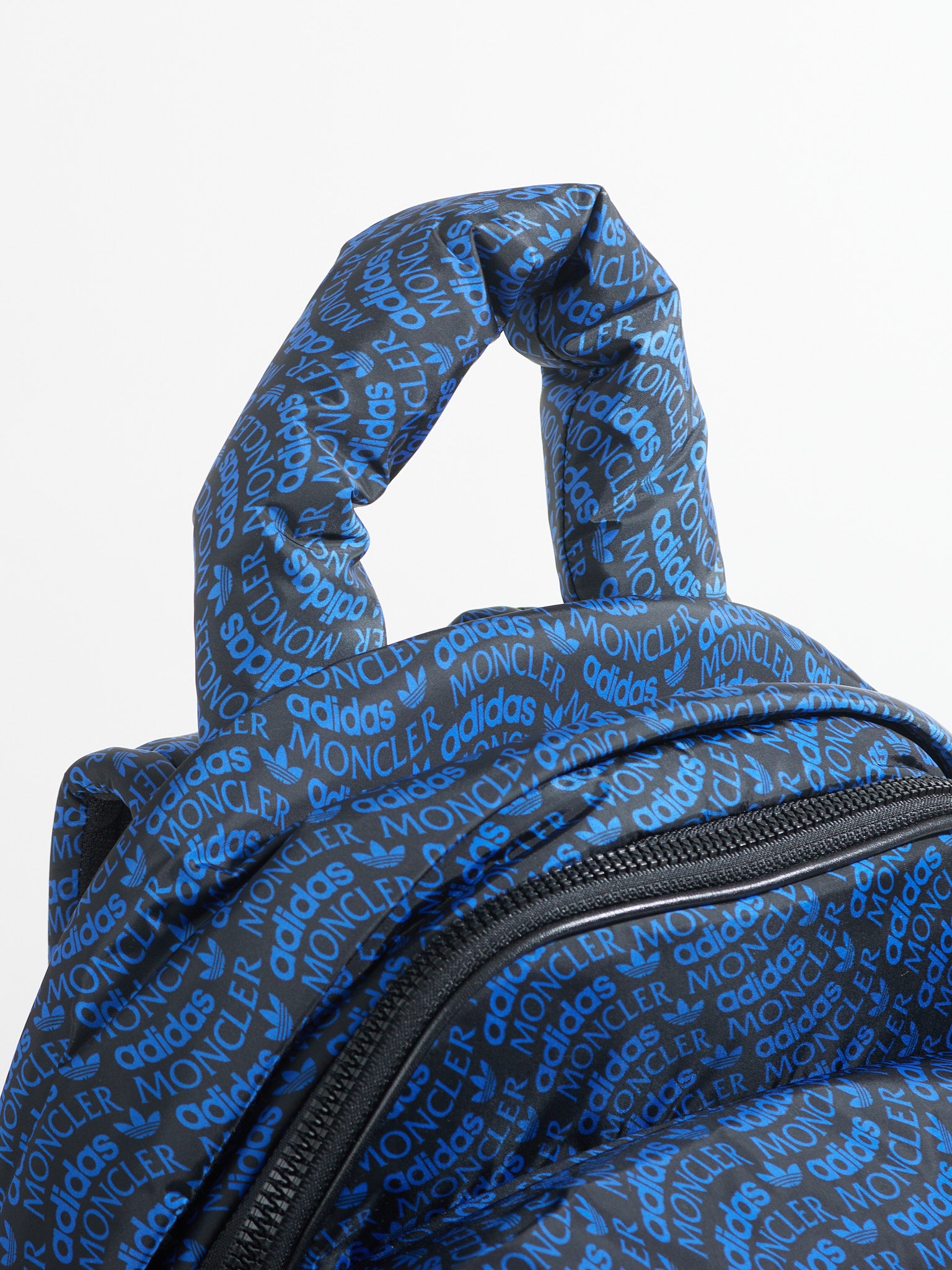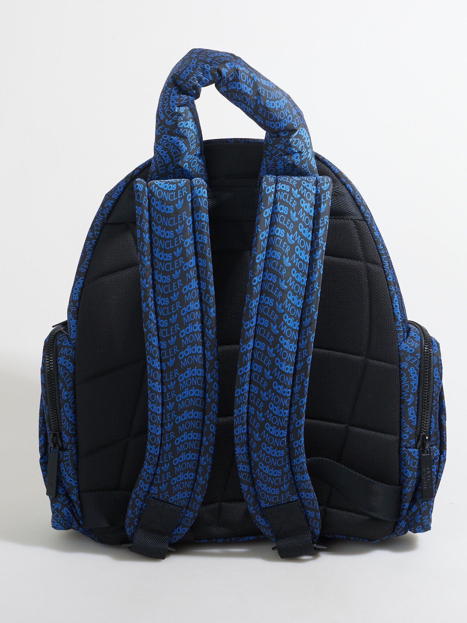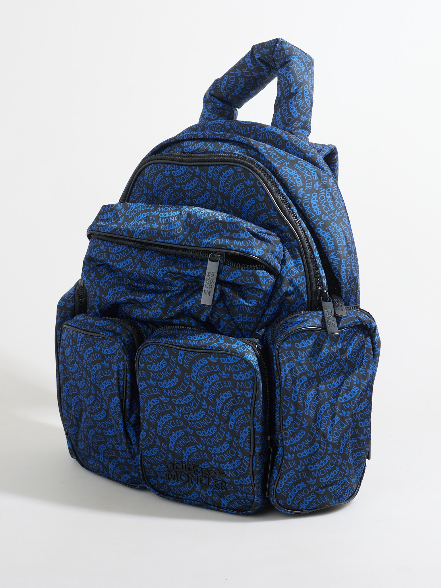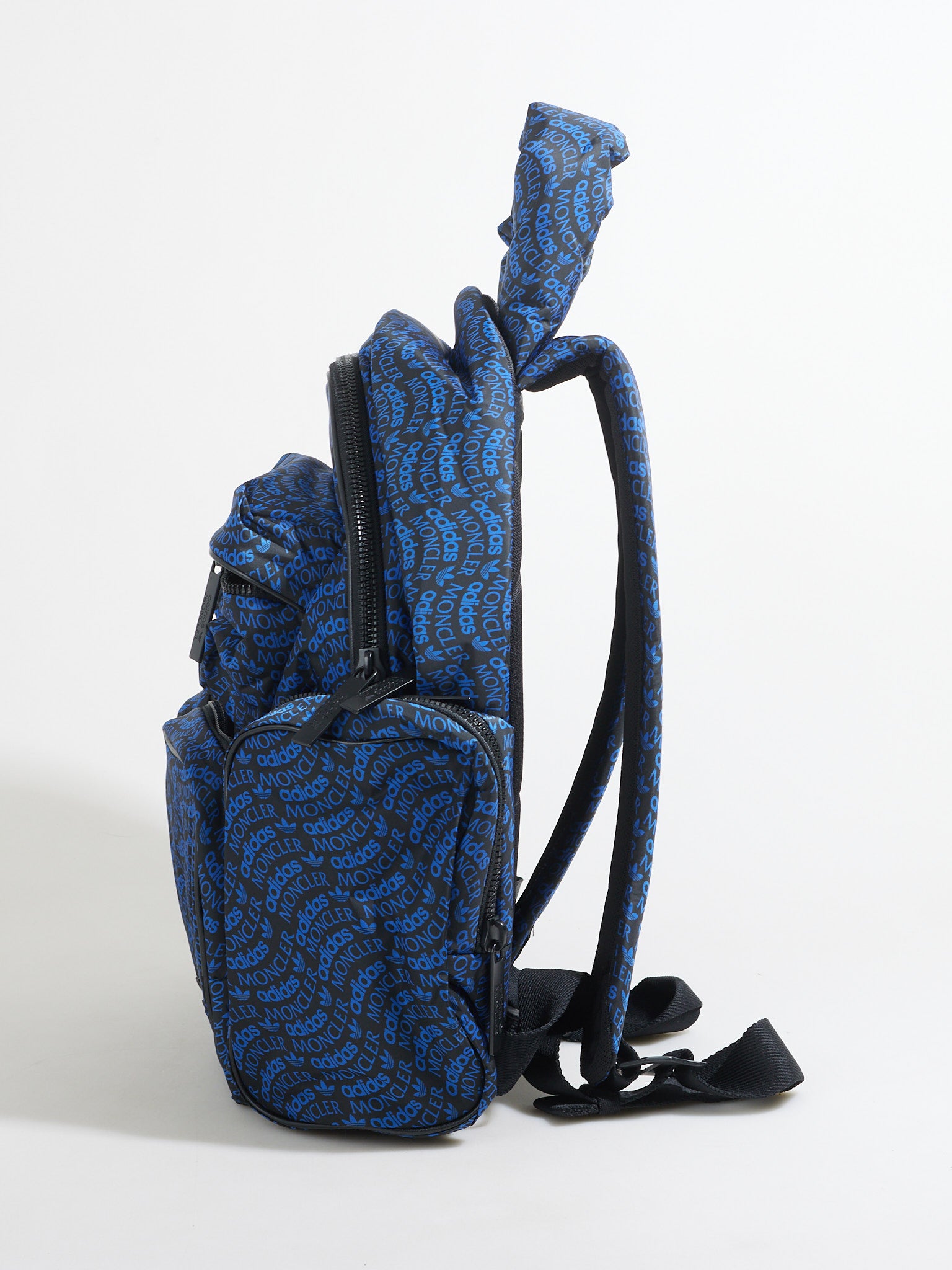 The Moncler x Adidas collaboration backpack merges the brands' iconic logo graphics with technical fabrication, delivering a contemporary silhouette that balances luxury sportswear aesthetics with practical versatility.