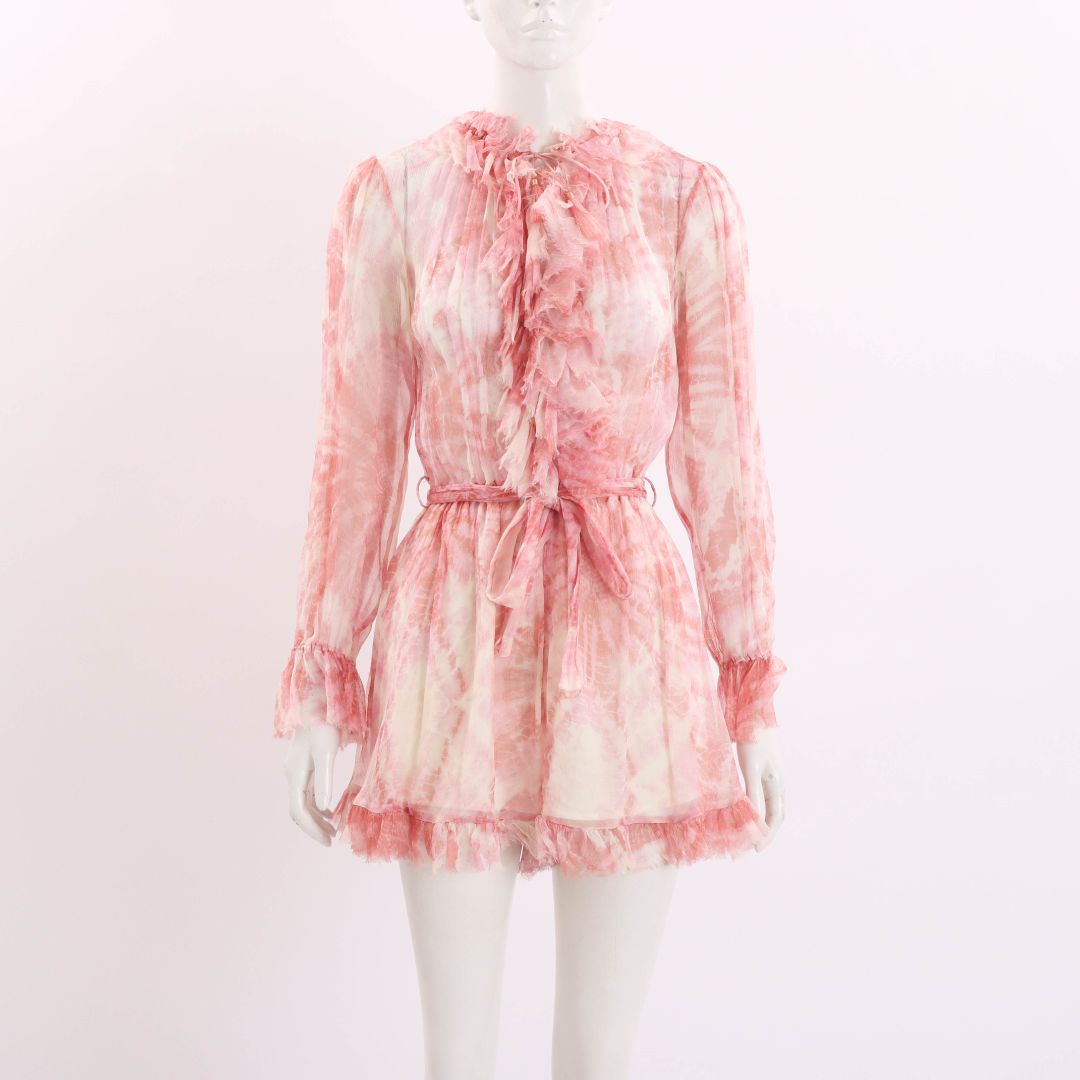 Zimmermann 'Winsome' Ruffle Silk Playsuit Size 0