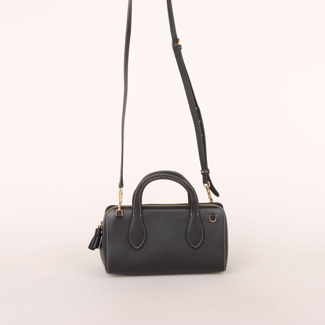 - Top zip closure with leather tassel pull