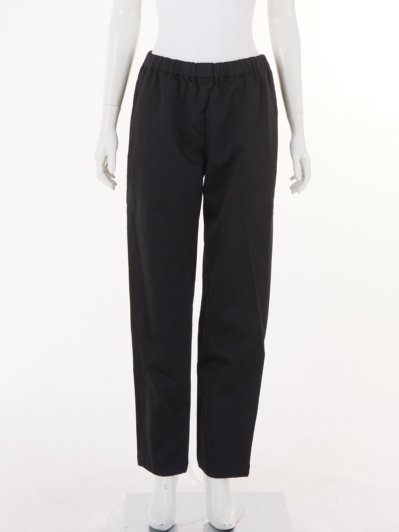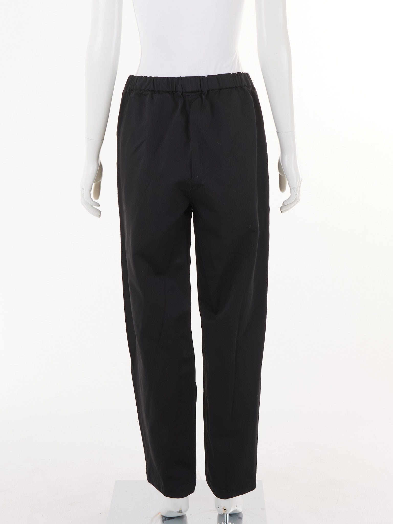 Comme Des Garcons elastic waist pants in a relaxed, comfortable silhouette featuring the brand's signature minimalist aesthetic with an adjustable waistband for versatile styling.