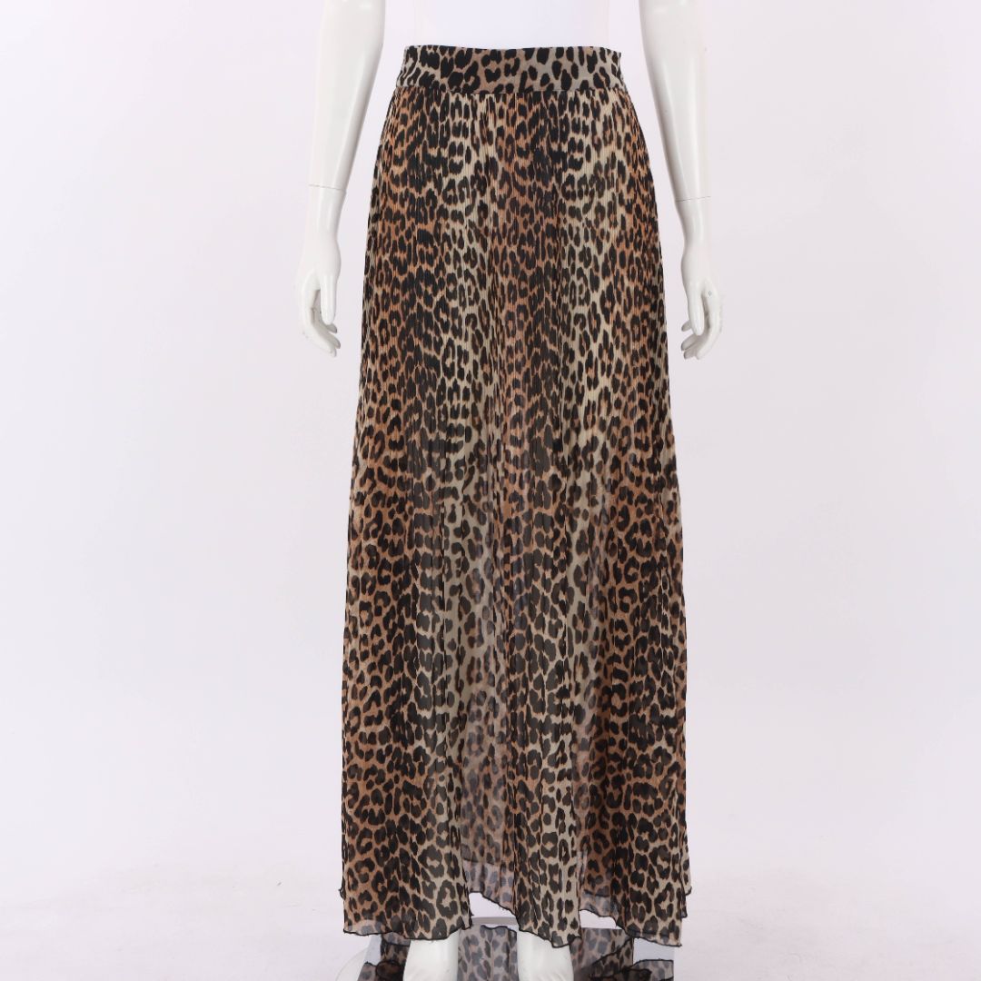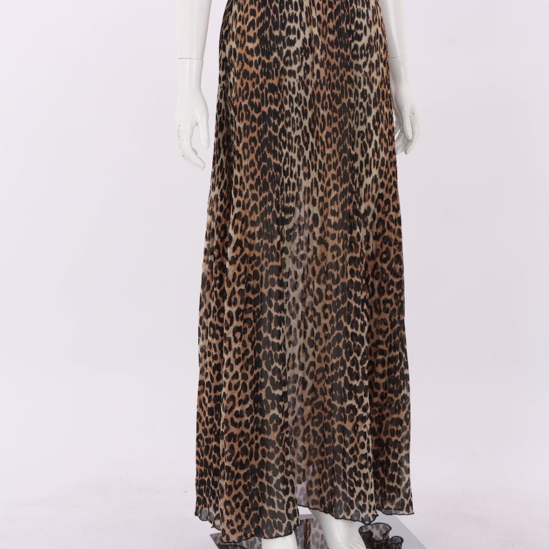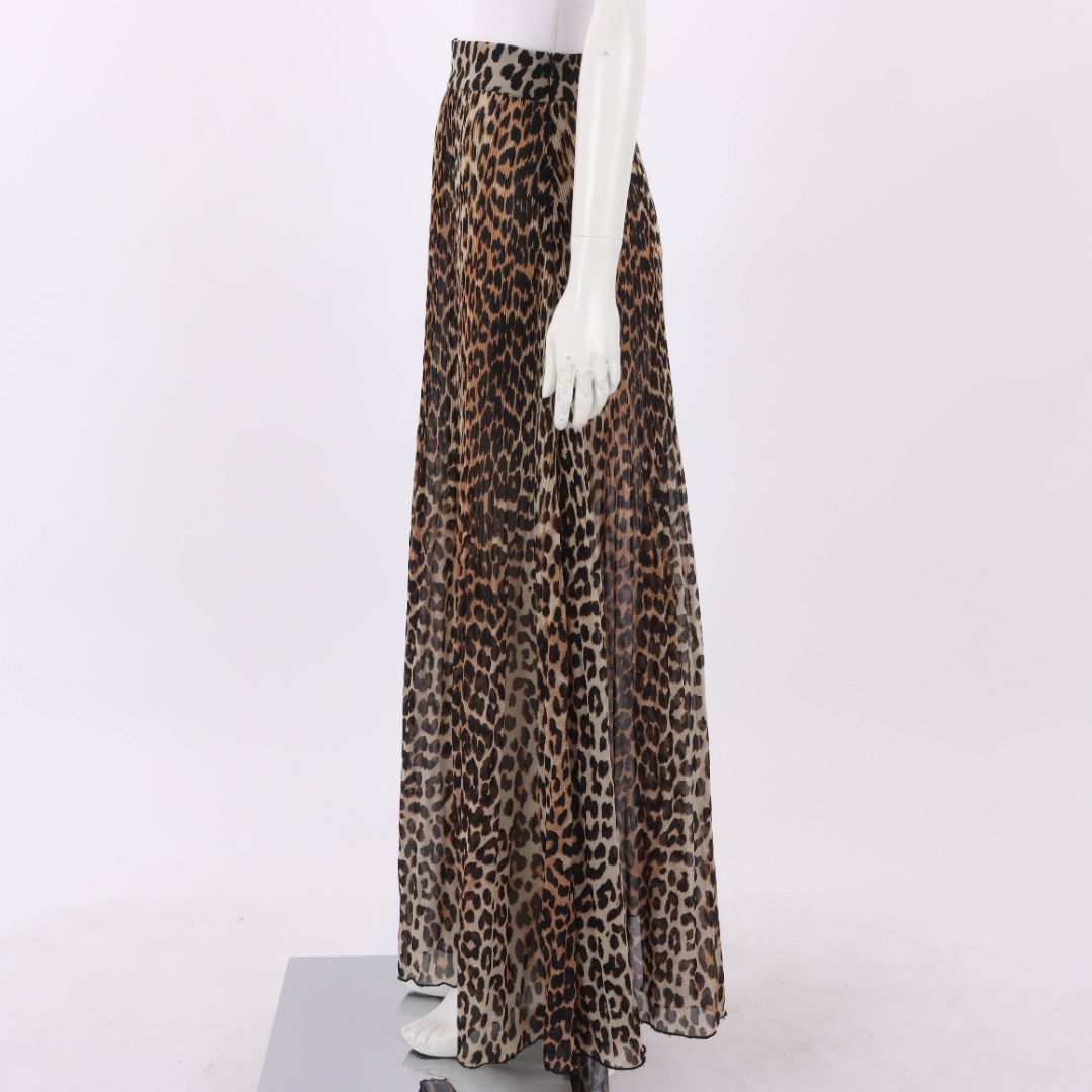 Ganni Leopard Print Pleated Georgette Maxi Skirt Size 34 | AU 6