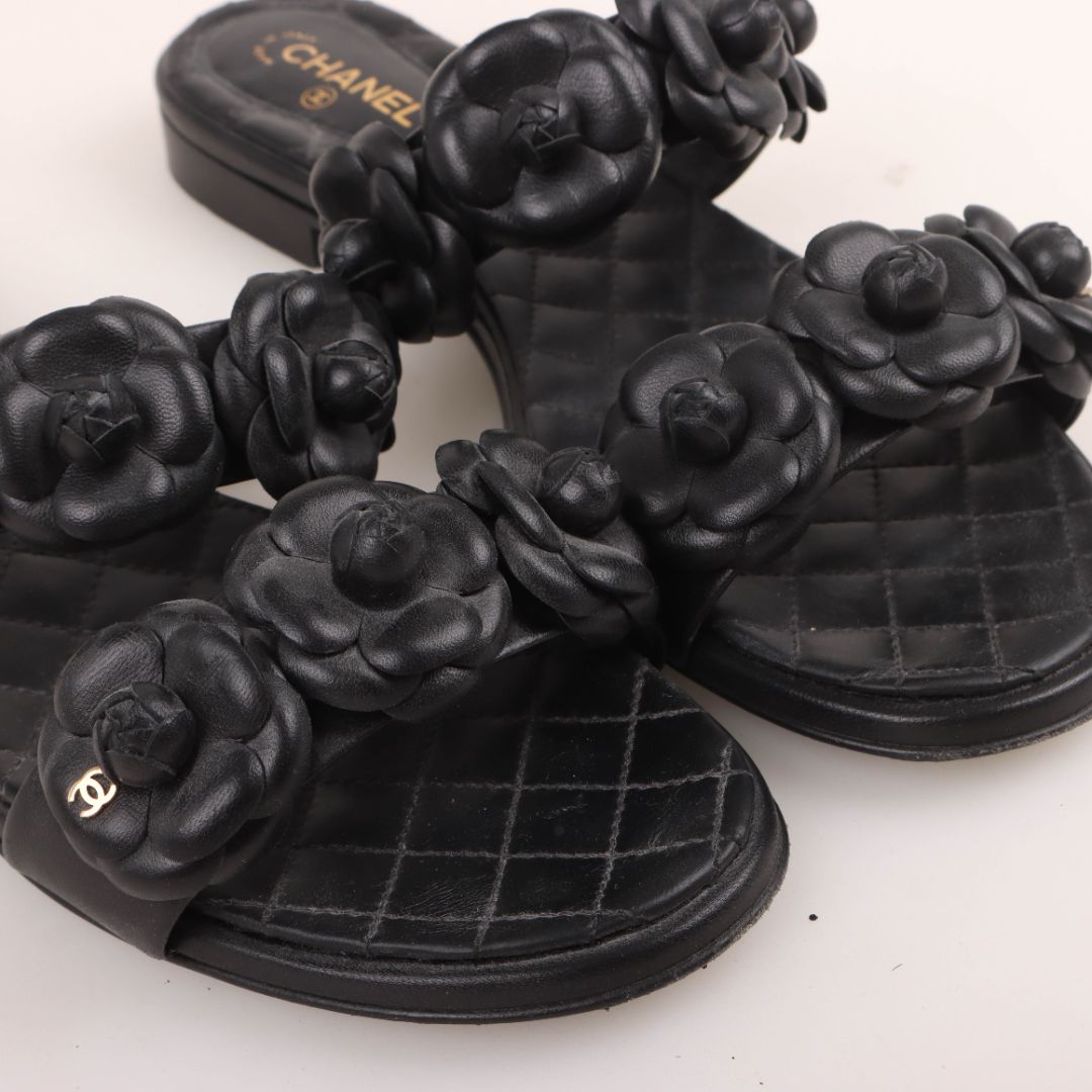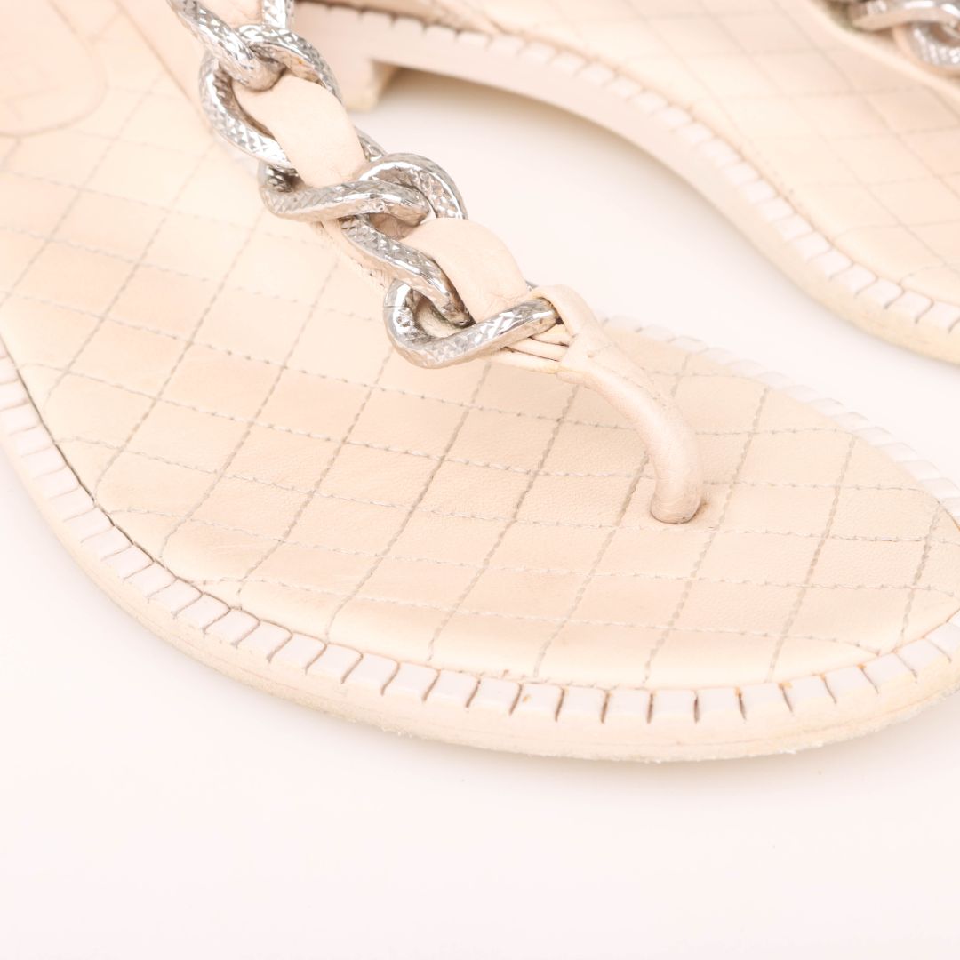 Chanel Interlocking Logo Leather Chain Sandals Size 38