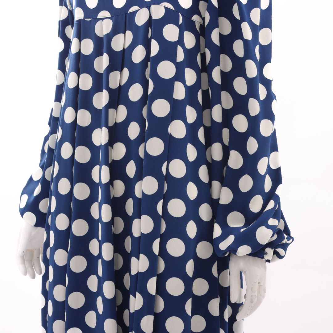 • Navy and white polka-dot silk