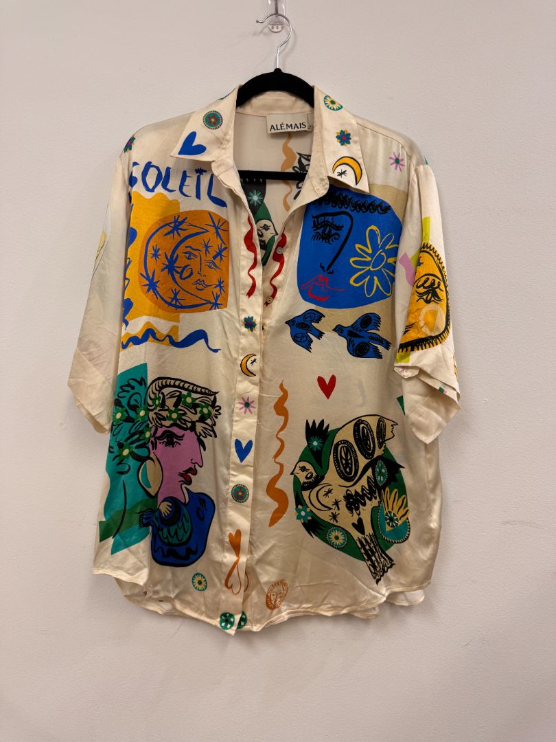 Condition: Good. Tiny pulls to front and mark on sleeve. Signs of wear to silk throughout.