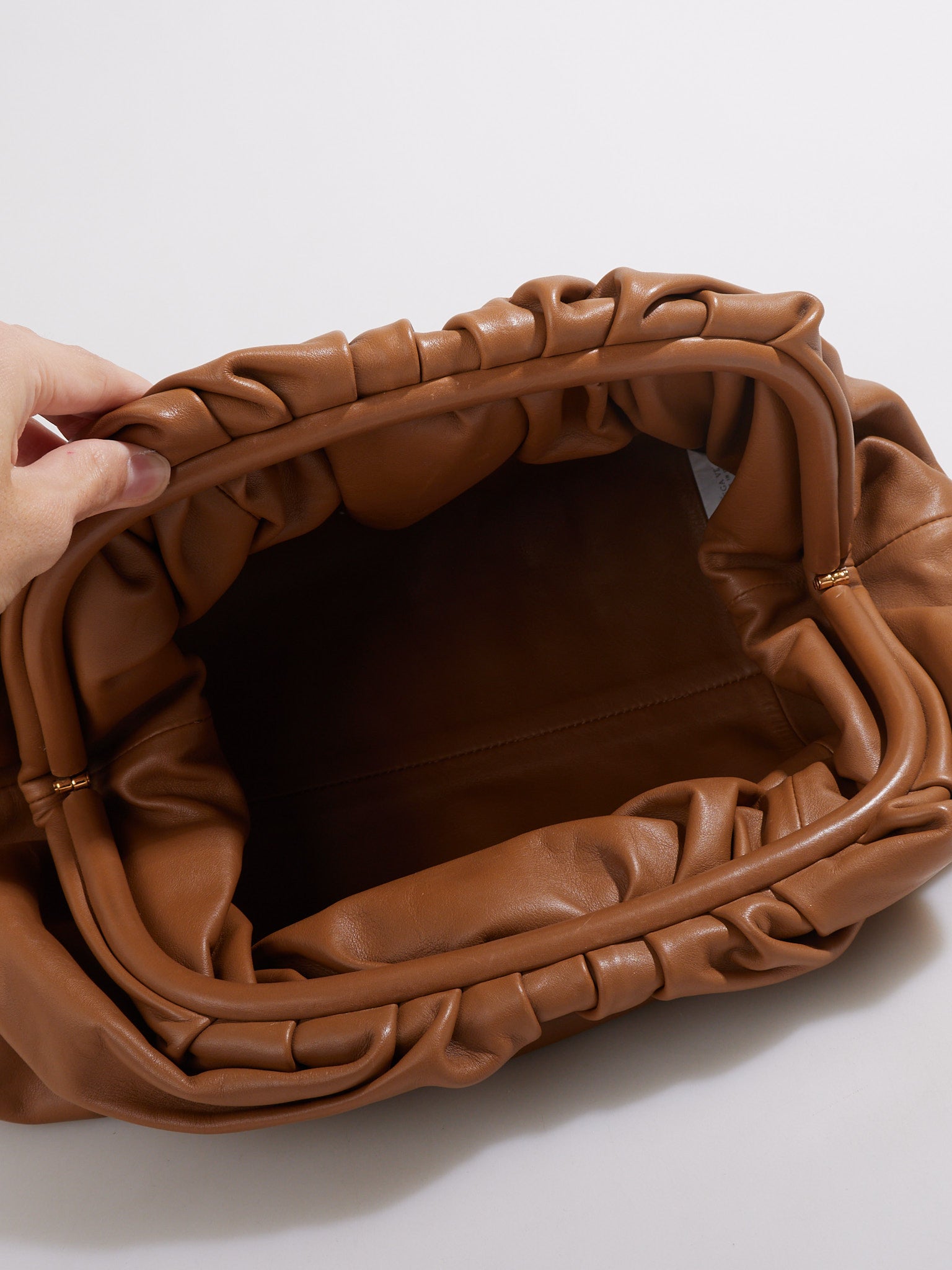 This Bottega Veneta clutch showcases the house's signature intrecciato weaving technique in supple leather, presenting a relaxed yet refined silhouette that epitomises understated Italian luxury.