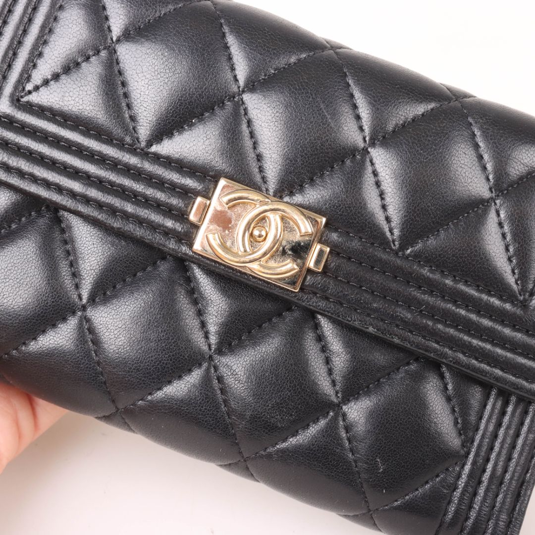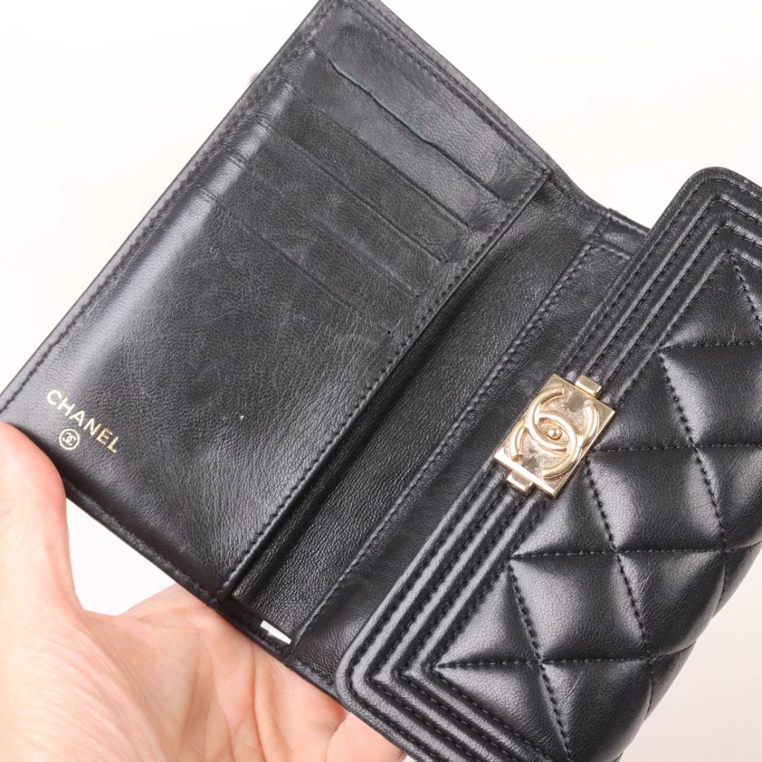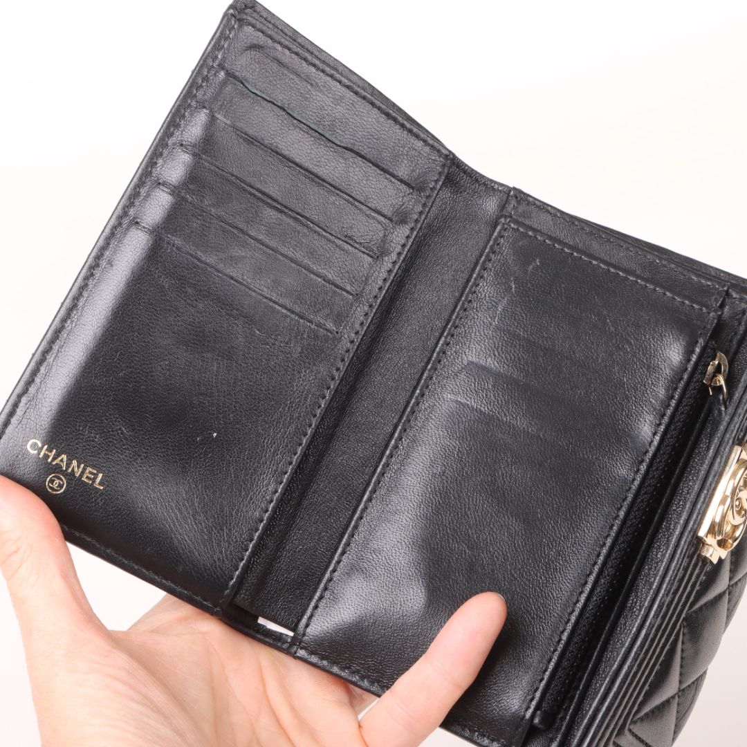 Condition: Good. Scratches to hardware. Minor marks to exterior leather. Marks and scratches to interior. Card holder section inside has parts of leather peeling.