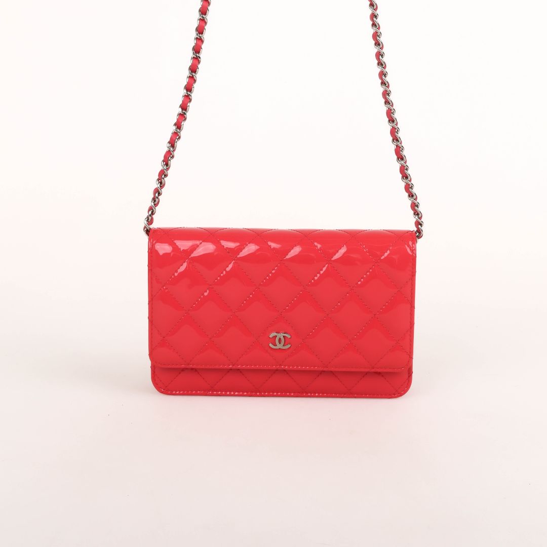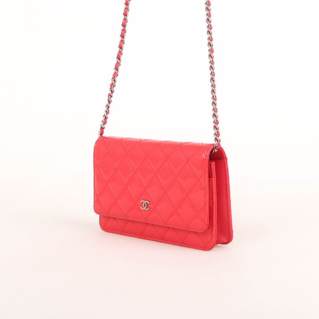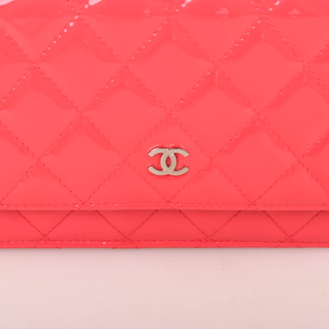 Chanel Patent Quilted Leather Wallet On Chain