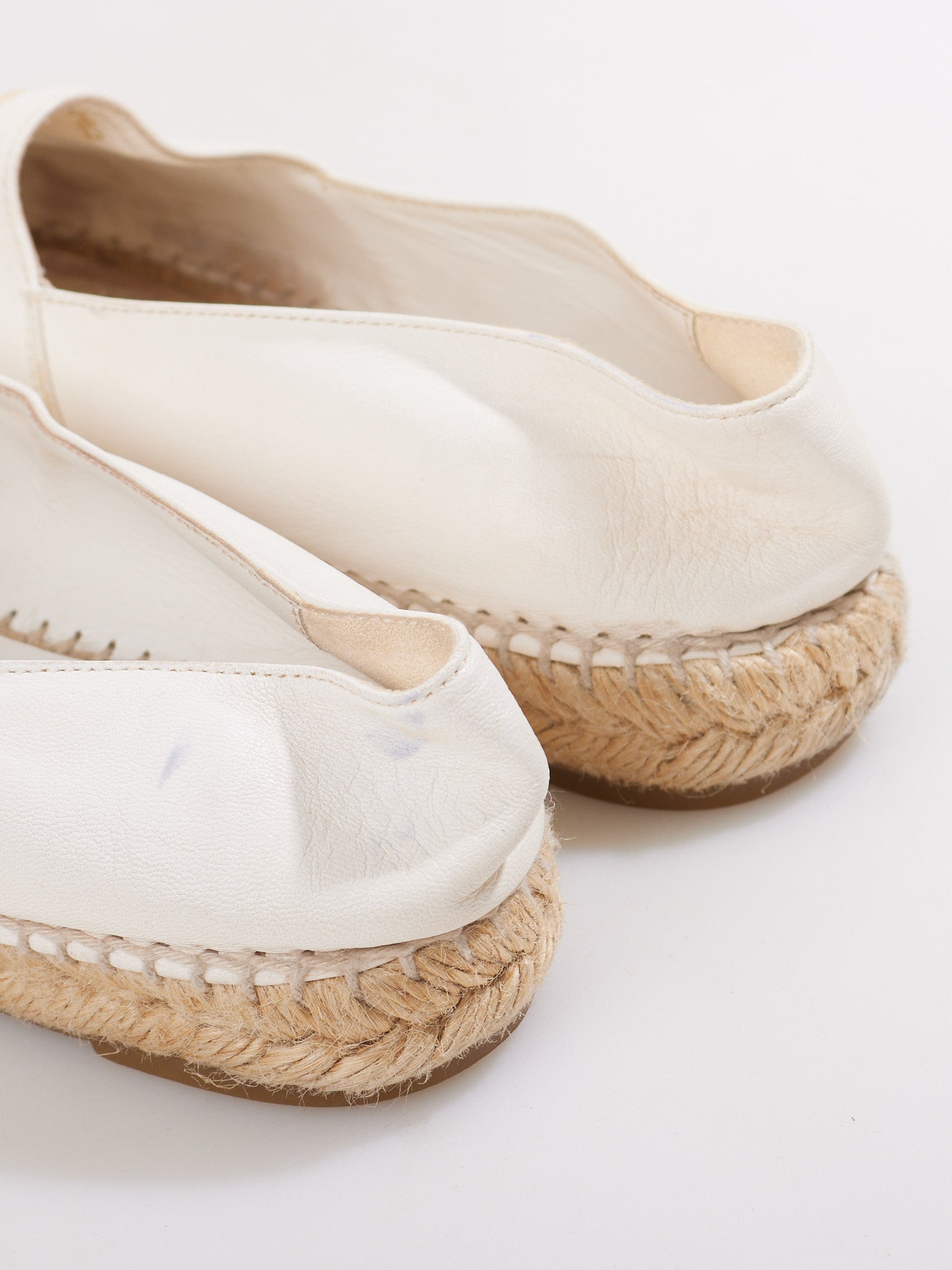 This Chanel two-tone CC logo espadrille exemplifies the house's mastery of casual luxury, combining a classic rope-soled silhouette with tonal leather blocking and the iconic interlocking monogram for effortless sophistication.