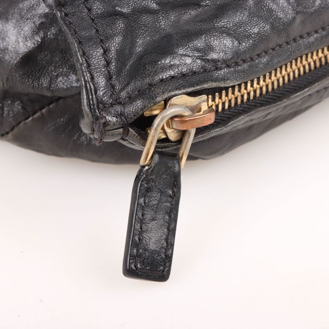 Condition: Good. Slightly mish-shaped. Tarnishing to to zips and branding.