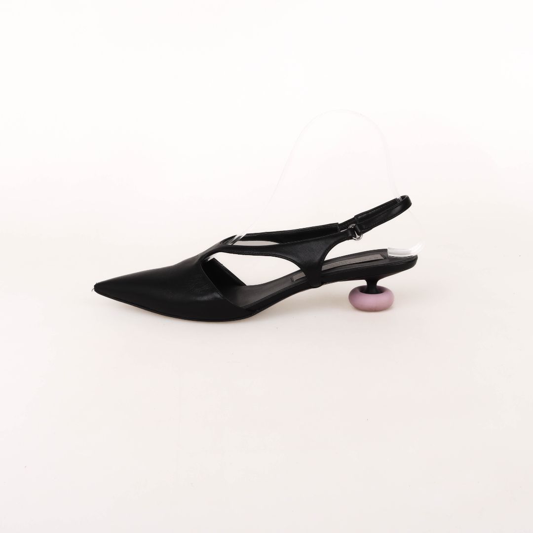 - Black leather slingbacks